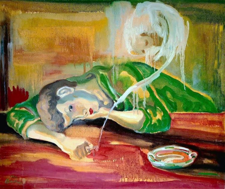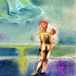 Whether they fall like rain onto a nightgown or constitute the foreground on faces, these tears are a subtext of sadness. Yet this is a sadness, which is not without reason and not without hope. For tears resonate with the waters of the beginning, and of the ongoing processes of life.
