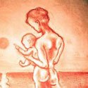 Transparent fabric wraps a naked female body. A mummy draped in her death shroud. At the same time though, the crinkly whiteness of her covering resembles a chrysalis, a living creature in a cocoon waiting to emerge. Badani continues to mix images of death and life, exploiting the idea that the cyclical nature there is movement and meaning. When a baby is born, a woman is transformed into a new shape, that of mother. Is it coincidental he asks that in British English mothers are called mummies? "Life creates future deaths," he explains. And death foments new life. In a Pieta pose, a man and a woman with naked torsos are posed together. The woman has become the Madonna, the long suffering mother acutely aware of failed potential, both in body and spirit. Her male child is draped over her legs. He too is inanimate. He too embodies the presence of absence. The world which births carries with it always the seeds of death.