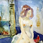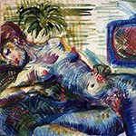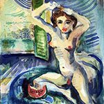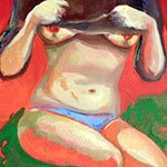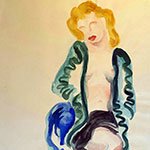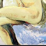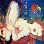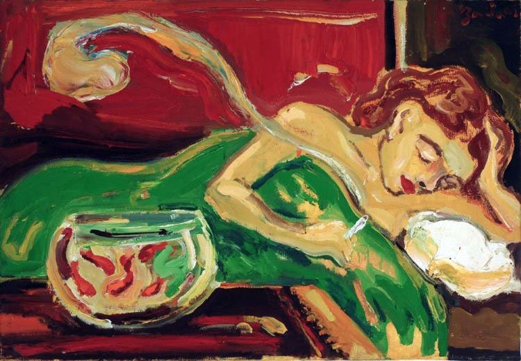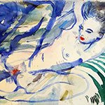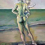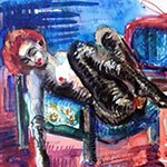 There is a series of reclining women interacting with an animated yet empty man’s jacket. The unfulfilled promise, a version of the presence of absence Derrida referred to. Fulfillment, companionship, intimacy, communication, here bankrupt. The empty jacket, like the fetus in the television screen, reveals the hardened outer shells, the kelipot, of the human being. They are what cover the human soul, according to the sixteenth century Kabbalist Isaac Luria. Here is longing, here is a sustained hope; here there is also illusion. A woman holds a handless sleeve to her breast – a gesture of sexual and maternal longing.