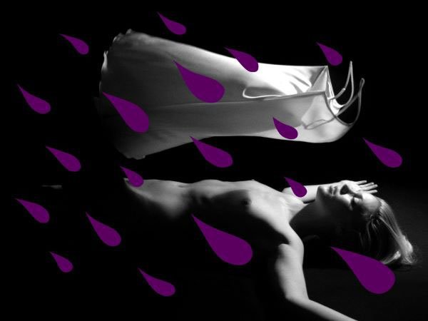 The short white satin nightgown is a counterpoint to the long black one which drapes other women. In some photos, the nightgown is both animated yet empty like the male jacket. A symbol of alienation, but this time not from another, but from one’s self. For this nightgown is a metonym for what is not being realized in the woman. The nightgown floats above her like a spirit summoned in a dream asking to be filled. And sometimes the nightgown floats alone like a lotus in a filled bath, a channel of water leading to the womb. Here is color in a dreamscape, a sensuous reminder of the convergence of spirit and matter, of creation and procreation.